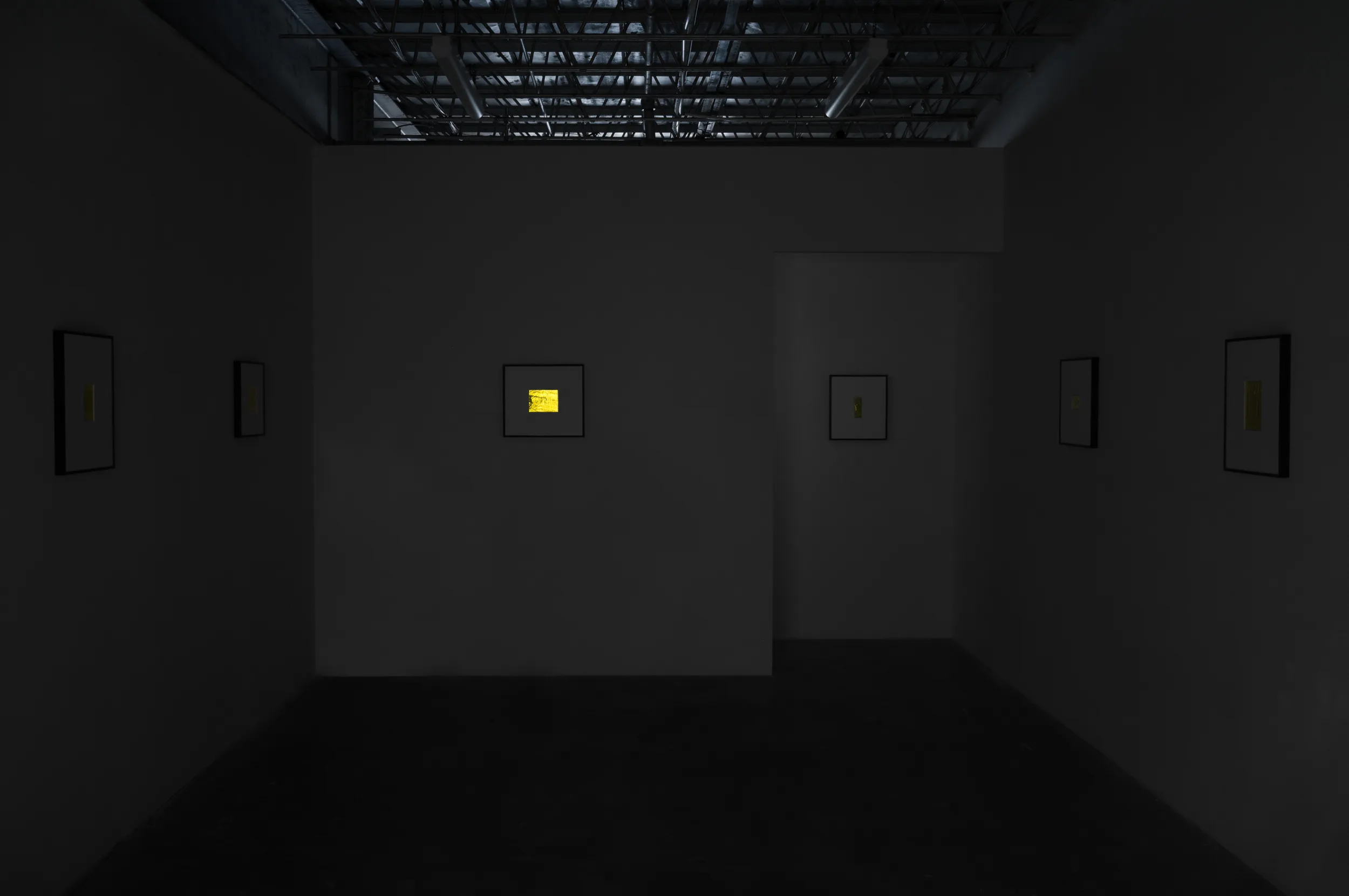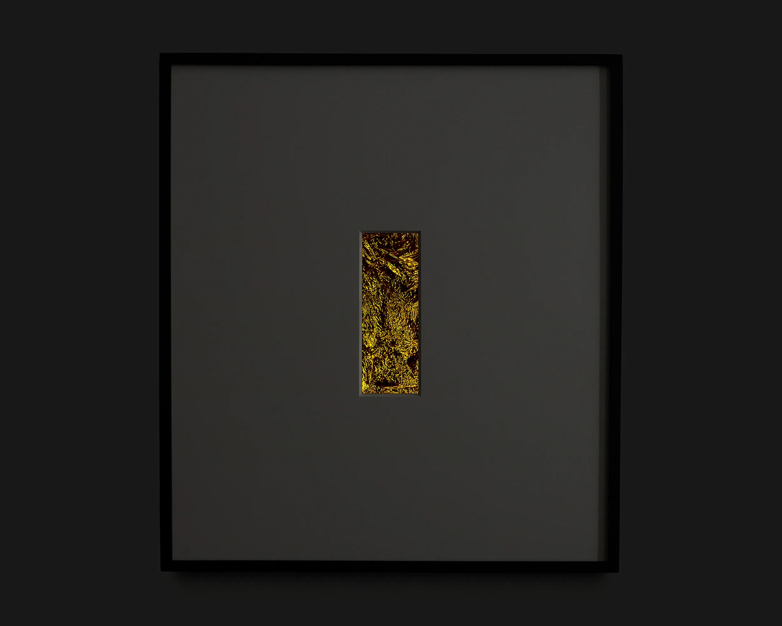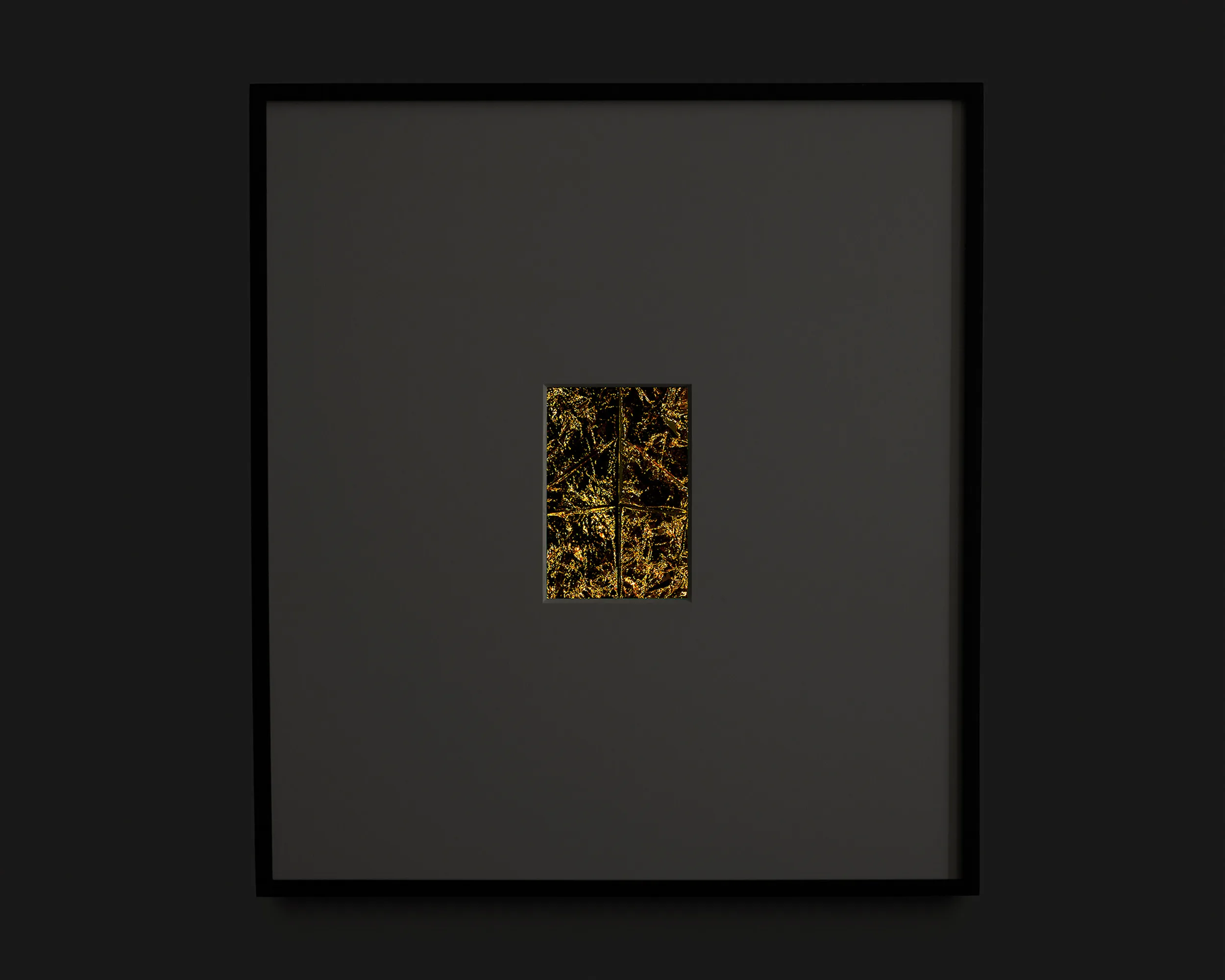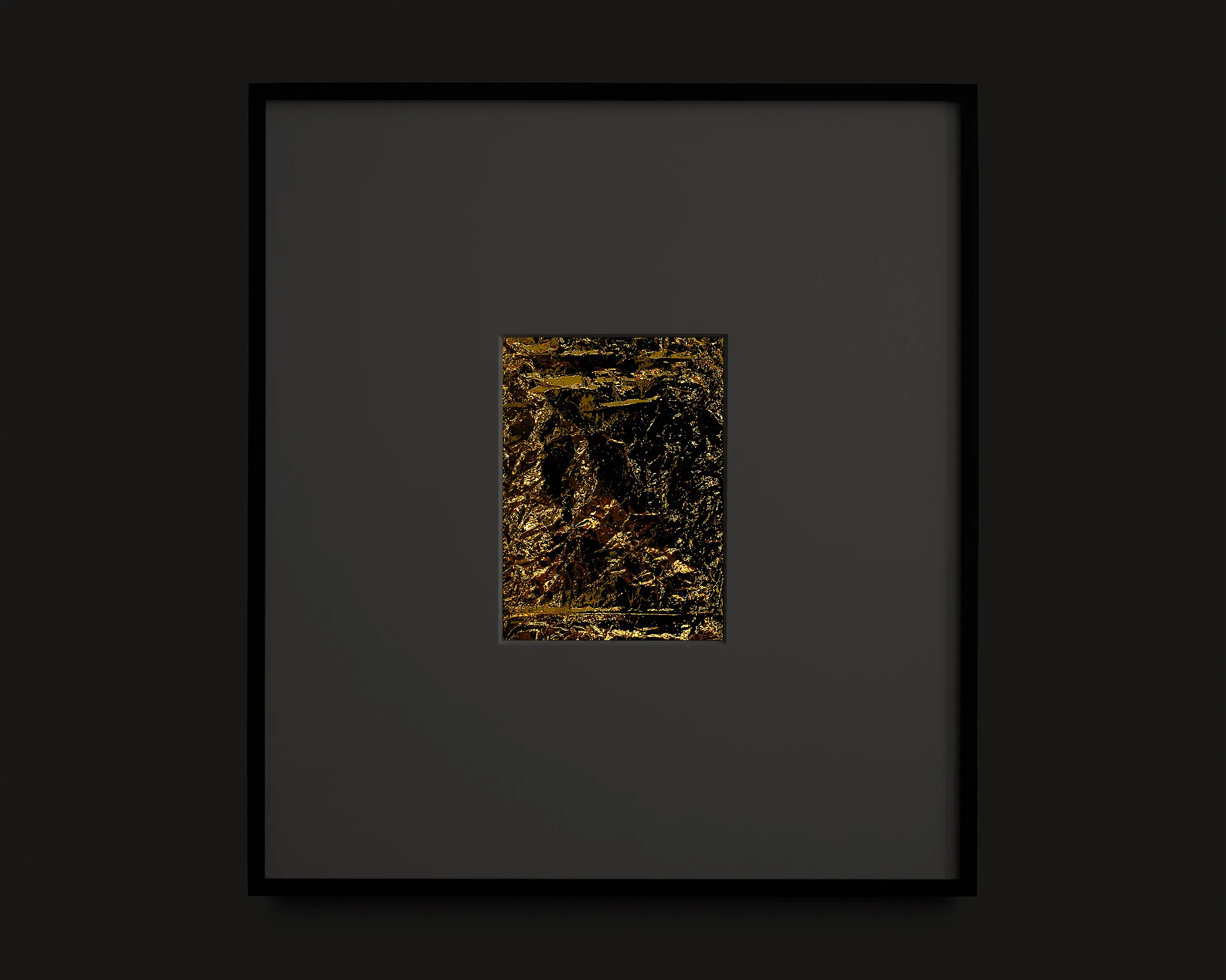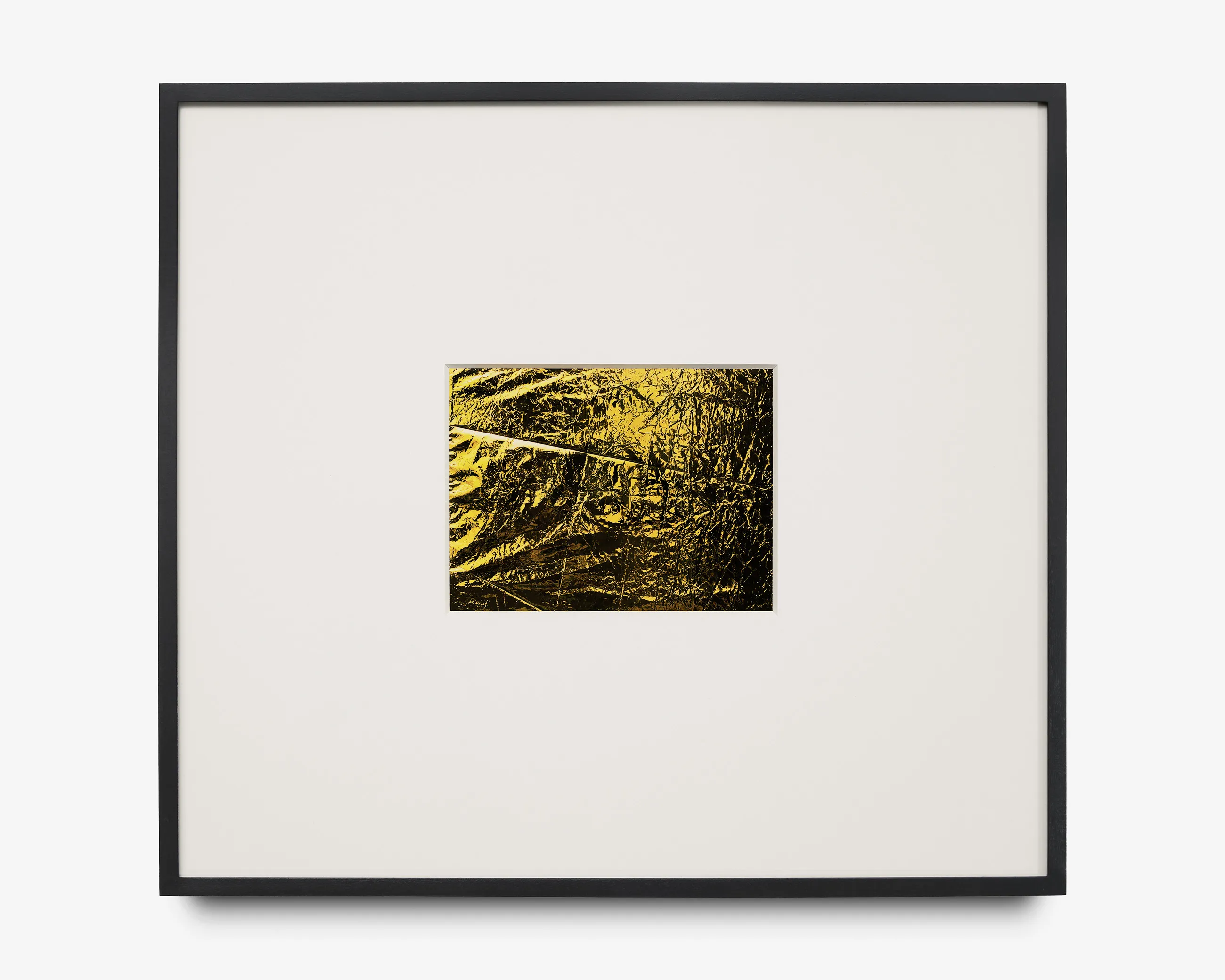 If Rembrandt domesticates Segers’ angel into a traditional landscape, the pieces in this exhibition may be said to make the opposite gesture: magnifying the material of unearthly flight. The density of markmaking used to depict the angel’s wings in Segers is mirrored by the wrinkled folds of the kapton. Werner Herzog called Segers’ prints “searchlights” into the “recesses of the self.” The kaptons chart a similar territory. There are rivulets, flashes of light, dark crevasses, summits and valleys, shattered surface. Patchworks of lineation filled with a kinetic, inter-planetary energy. Gold ground. “States of mind.” What Segers might call landscapes.